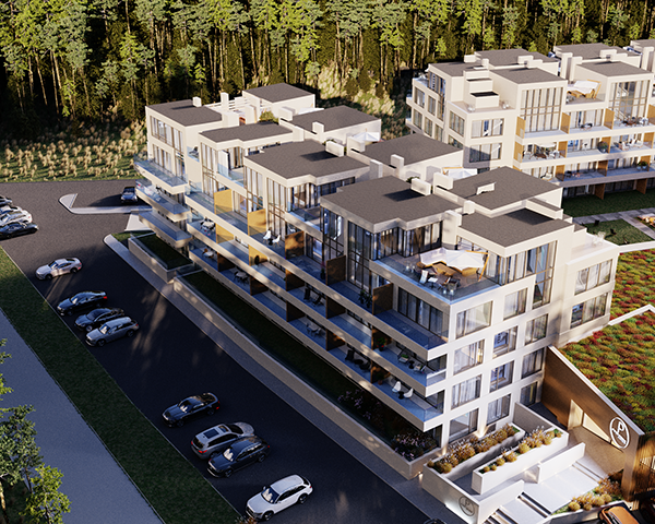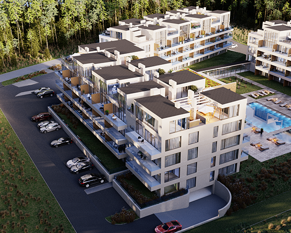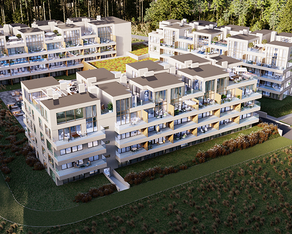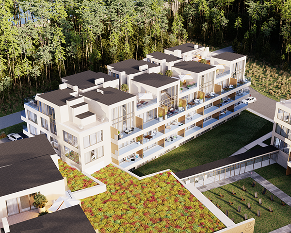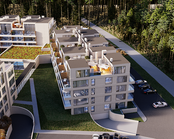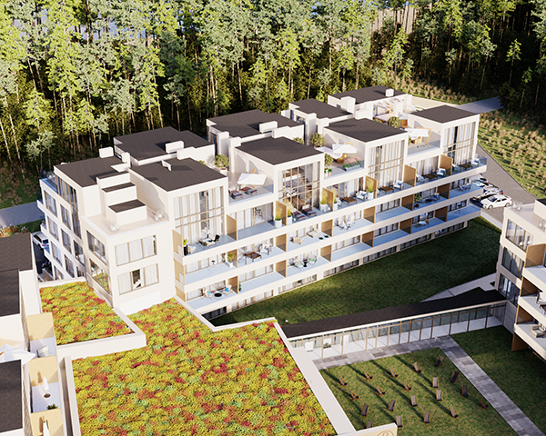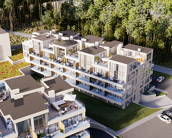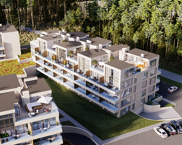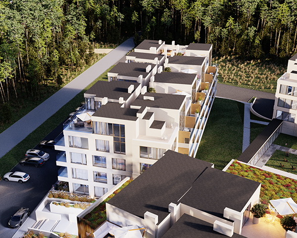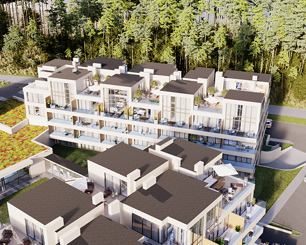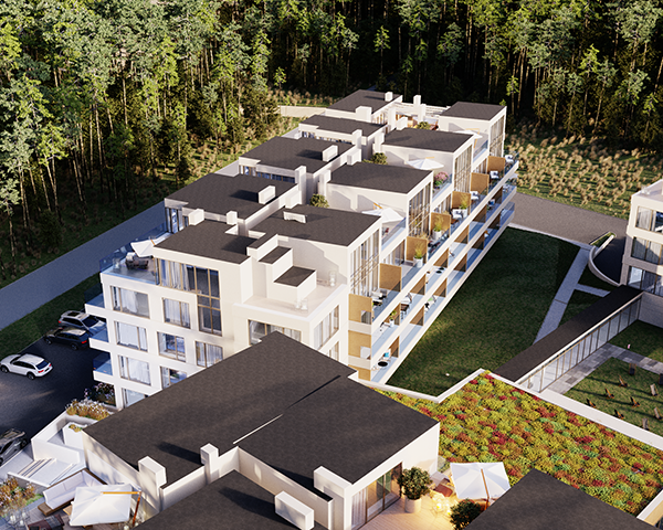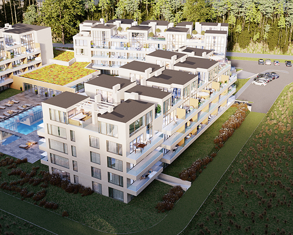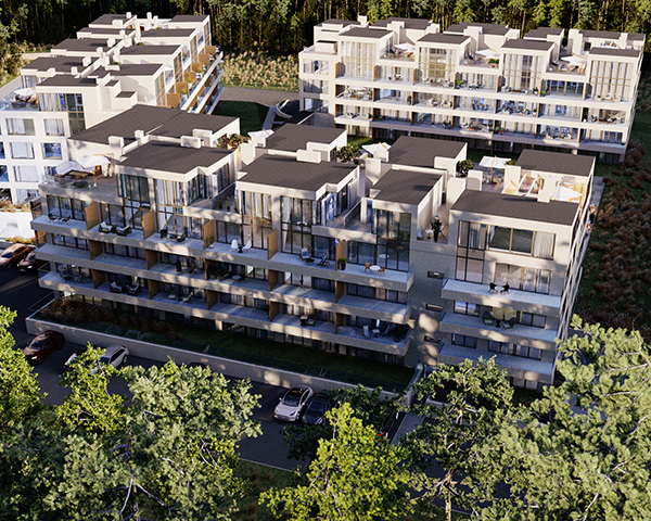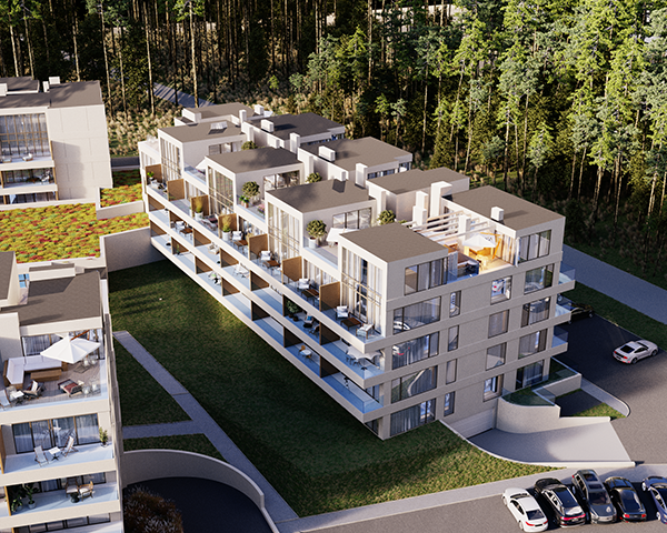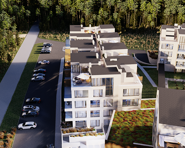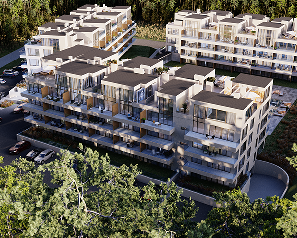 Projekt obejmuje 124 komfortowe apartamenty z dużymi balkonami oraz 33 dwupoziomowe penthouse’y z tarasami na dachu budynku. Do mieszkań na parterze przynależą tarasy lub ogródki. Dzięki otwartym przestrzeniom możesz w maksymalnej prywatności wypoczywać na świeżym powietrzu, ciesząc się otaczającą Cię naturą. Każdy lokal został zaprojektowany z myślą o komforcie i funkcjonalności. Na całej powierzchni apartamentów znajduje się ogrzewanie podłogowe. Wszystkie lokale mają także klimatyzację.