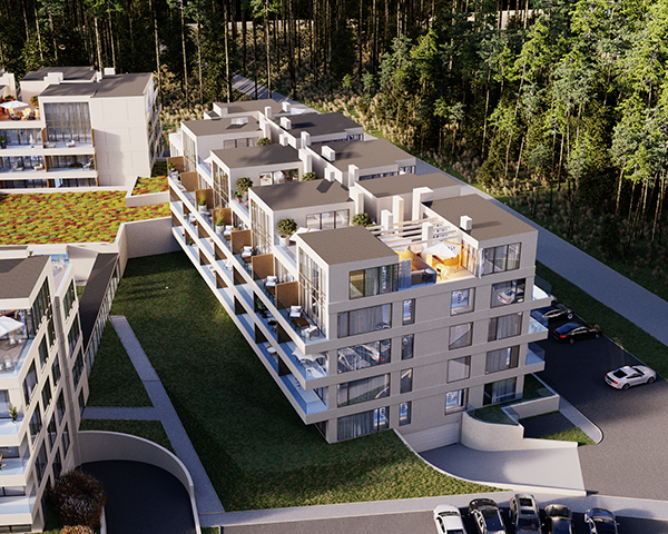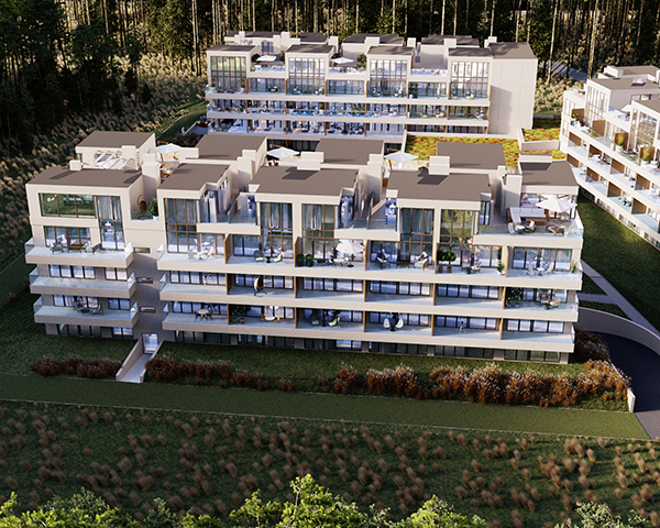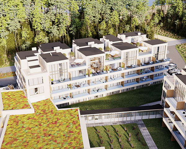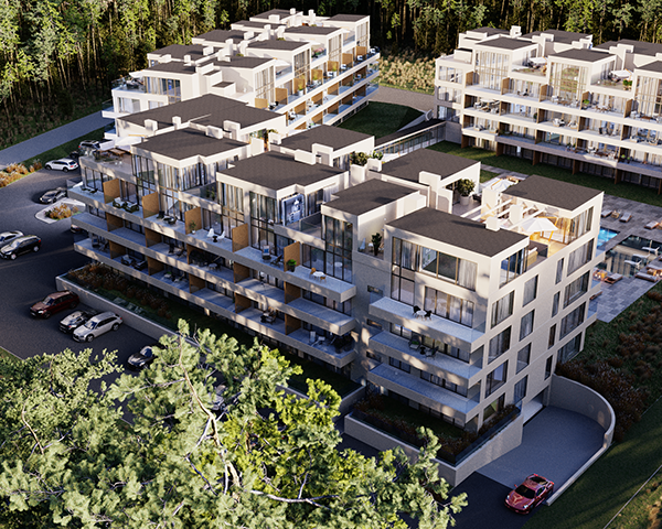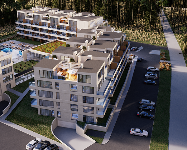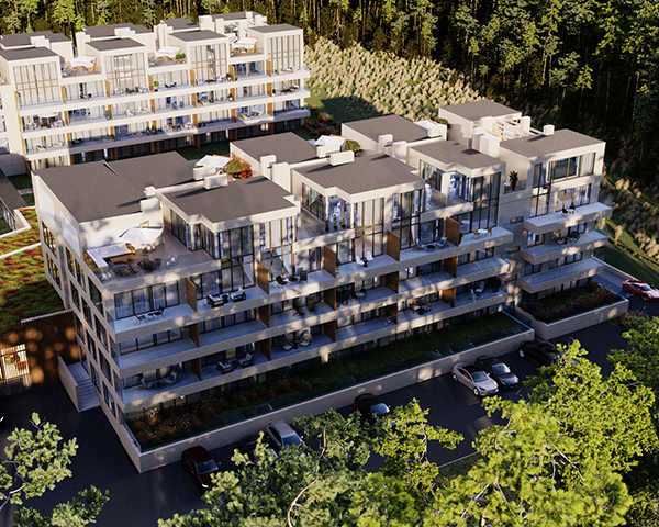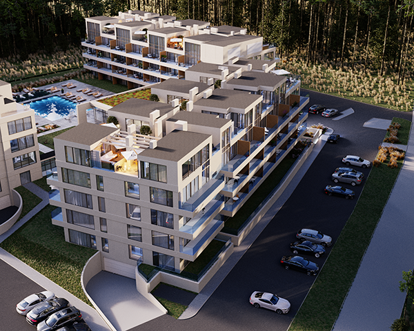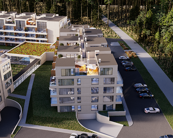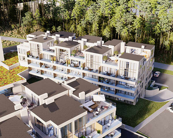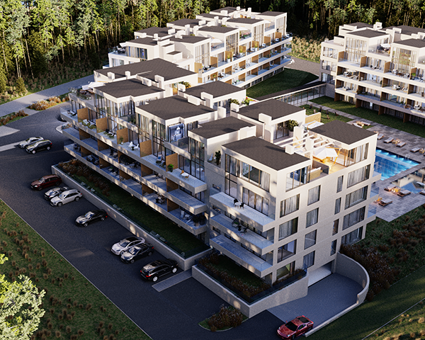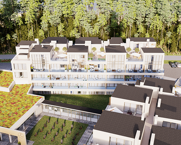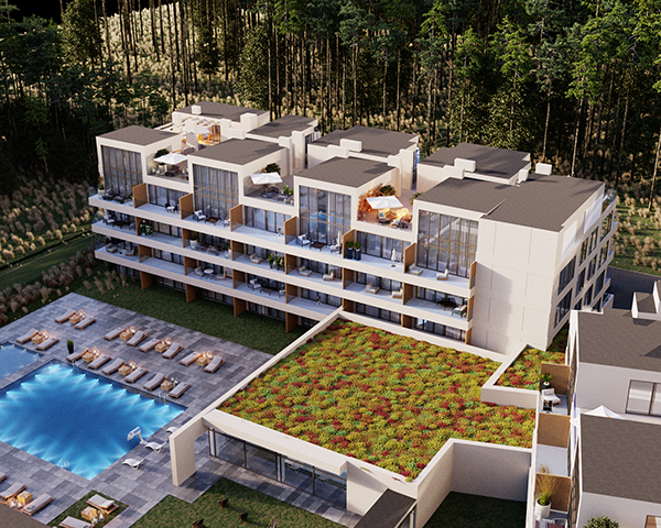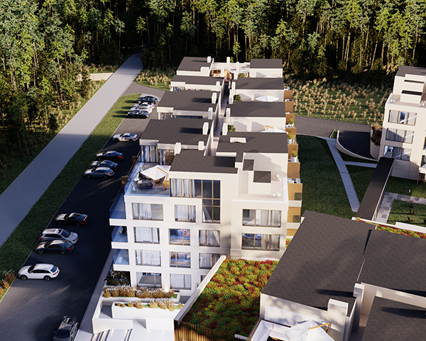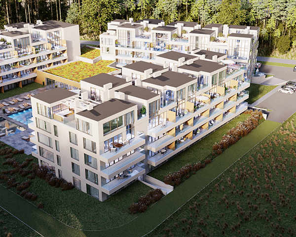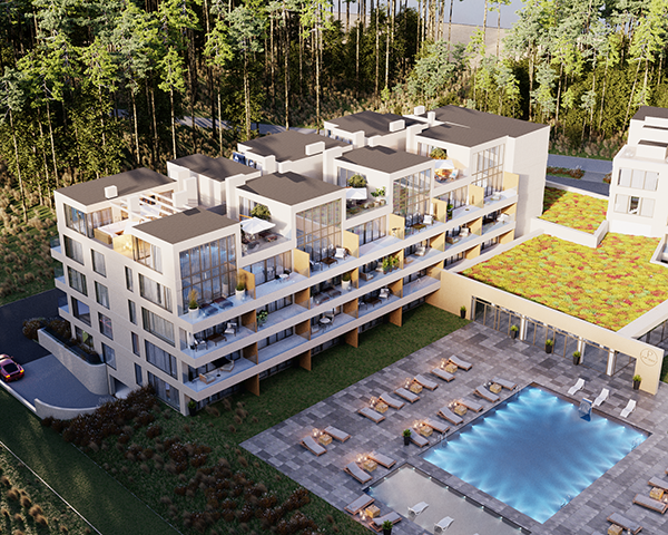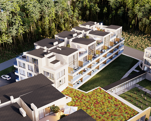 Projekt obejmuje 124 komfortowe apartamenty z dużymi balkonami oraz 33 dwupoziomowe penthouse’y z tarasami na dachu budynku. Do mieszkań na parterze przynależą tarasy lub ogródki. Dzięki otwartym przestrzeniom możesz w maksymalnej prywatności wypoczywać na świeżym powietrzu, ciesząc się otaczającą Cię naturą. Każdy lokal został zaprojektowany z myślą o komforcie i funkcjonalności. Na całej powierzchni apartamentów znajduje się ogrzewanie podłogowe. Wszystkie lokale mają także klimatyzację.