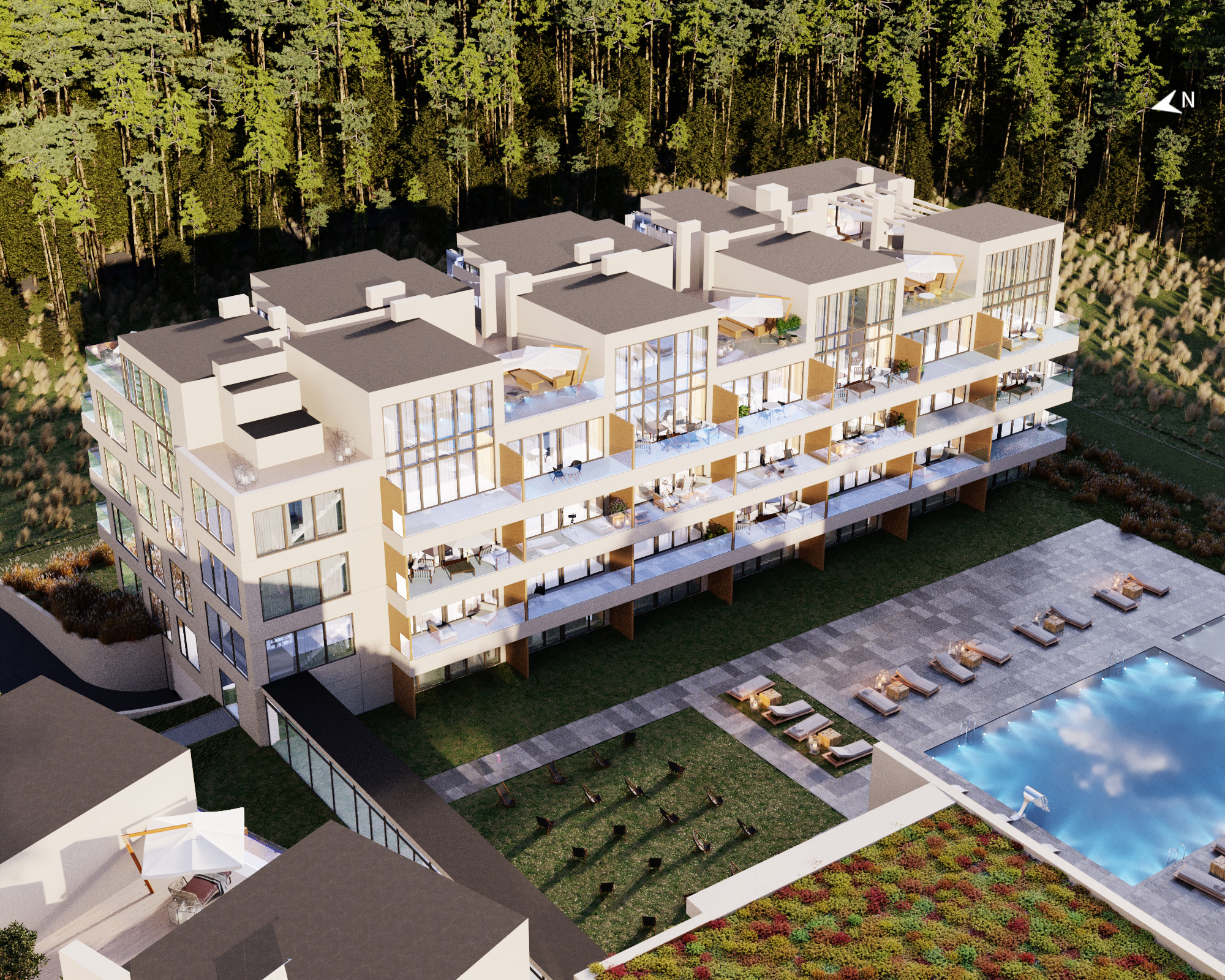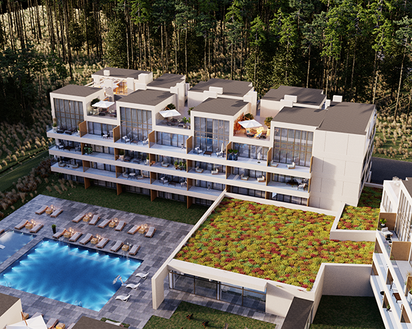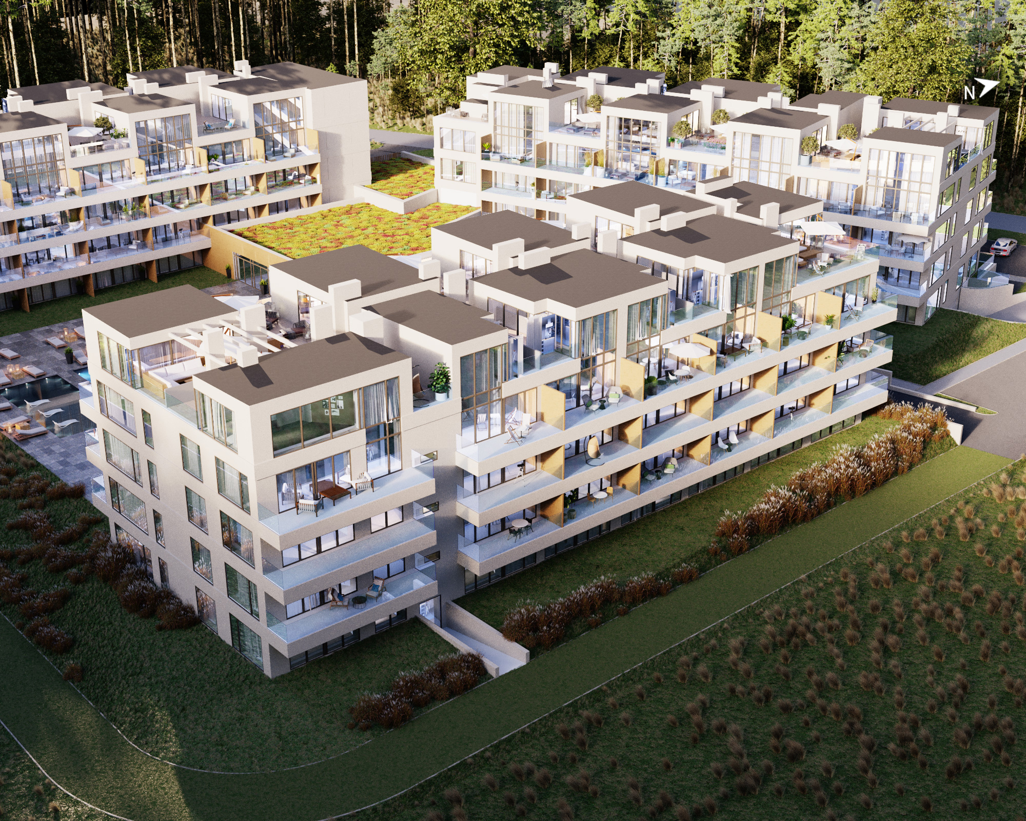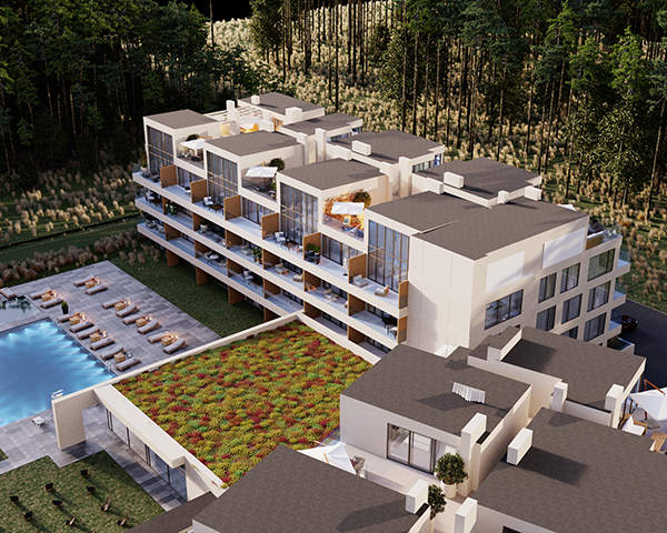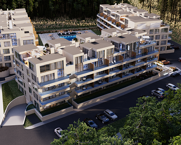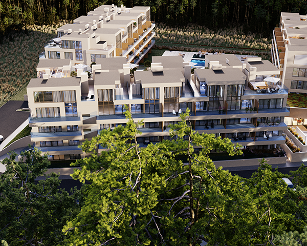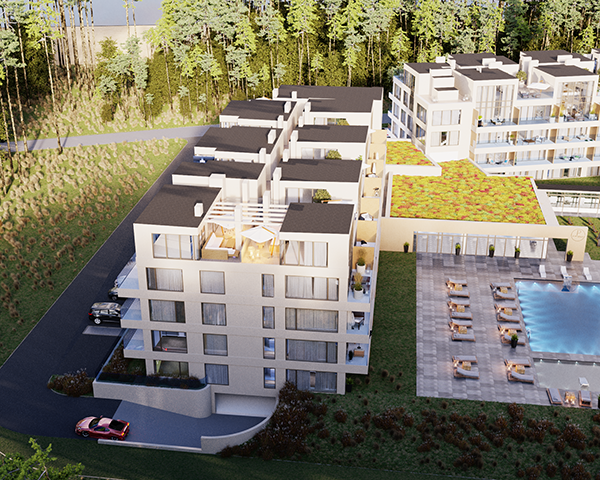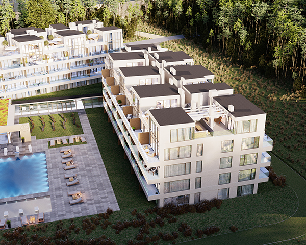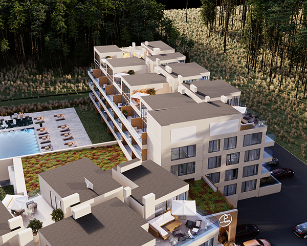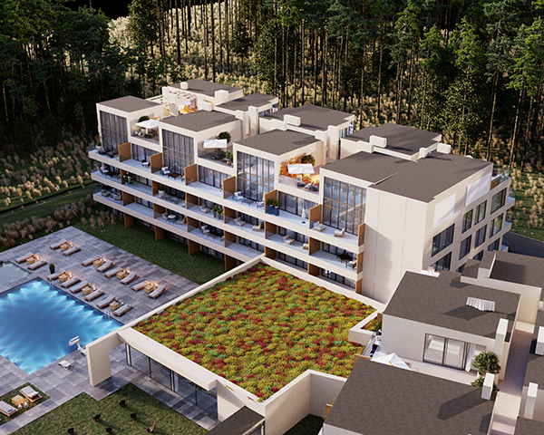 Projekt obejmuje 124 komfortowe apartamenty z dużymi balkonami oraz 33 dwupoziomowe penthouse’y z tarasami na dachu budynku. Do mieszkań na parterze przynależą tarasy lub ogródki. Dzięki otwartym przestrzeniom możesz w maksymalnej prywatności wypoczywać na świeżym powietrzu, ciesząc się otaczającą Cię naturą. Każdy lokal został zaprojektowany z myślą o komforcie i funkcjonalności. Na całej powierzchni apartamentów znajduje się ogrzewanie podłogowe. Wszystkie lokale mają także klimatyzację.