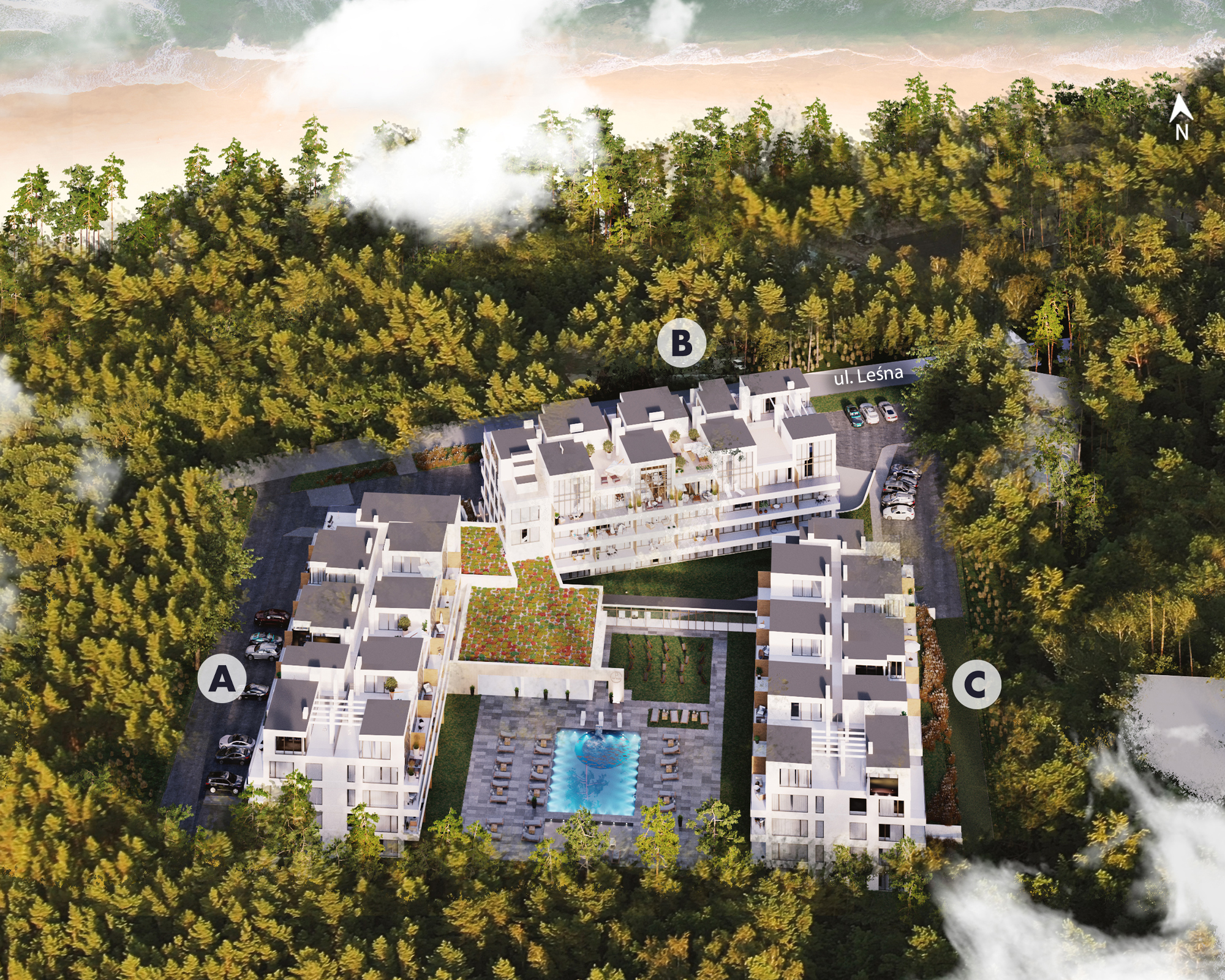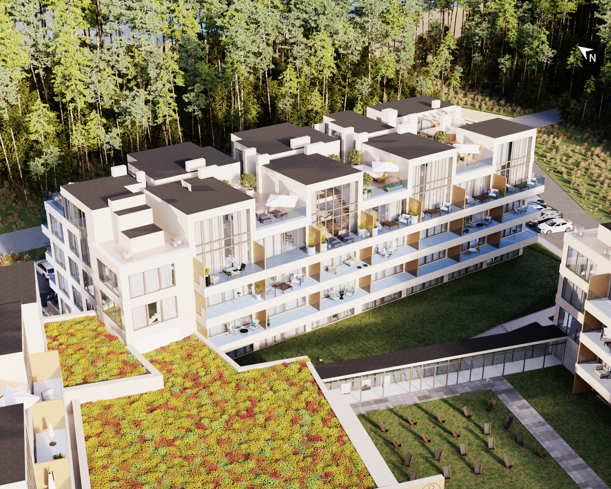 Portofino Residence – Sarbinowo to wyjątkowy projekt, który redefiniuje pojęcie luksusu i komfortu na bałtyckim wybrzeżu. Nowoczesna inwestycja, której architektura doskonale komponuje się z otaczająca naturą, znajduje się na zamkniętym terenie, zapewniając prywatność i bezpieczeństwo wszystkim mieszkańcom. Teren ten obejmuje również rowerownię oraz podziemny i nadziemny parking ze stanowiskami do ładowania samochodów elektrycznych.
